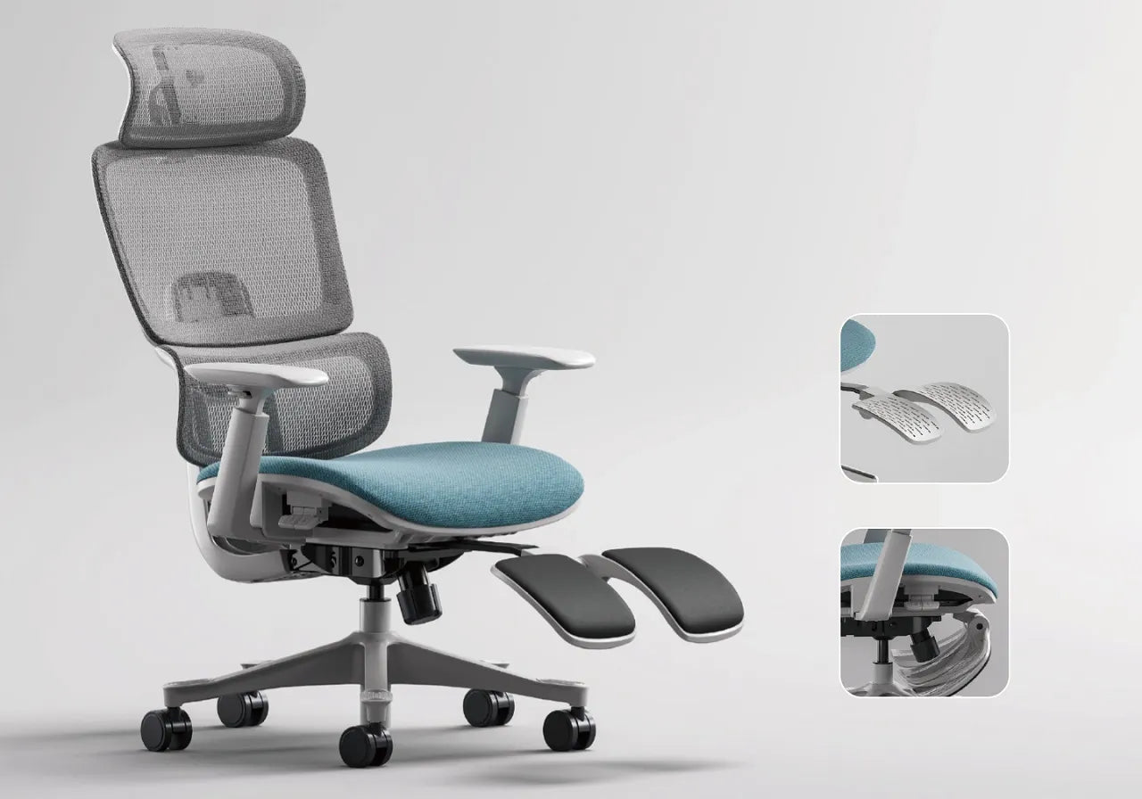 Hidden reclining footrest with high-elastic mesh fabric, easy to pull out and stow away to save space.